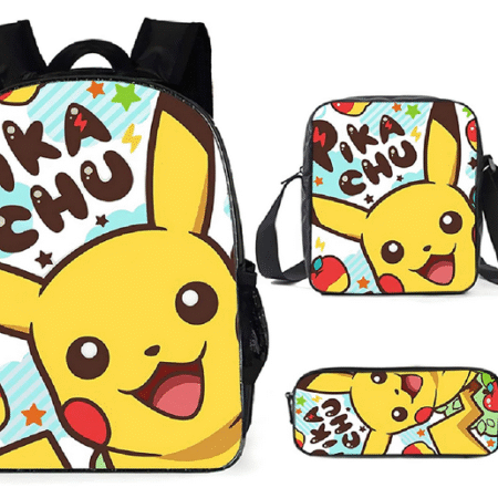 Cartoon Poke-Mon Pikachu Lightweight School Bag Backpack 3 Piece Value Set